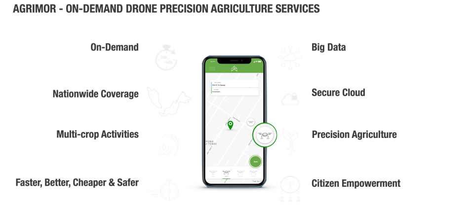 The Agrimor SuperApp allows farmers, agencies and agriculture service providers to request drones and pilots for agriculture seeding, spraying, plant analysis, mapping and more.